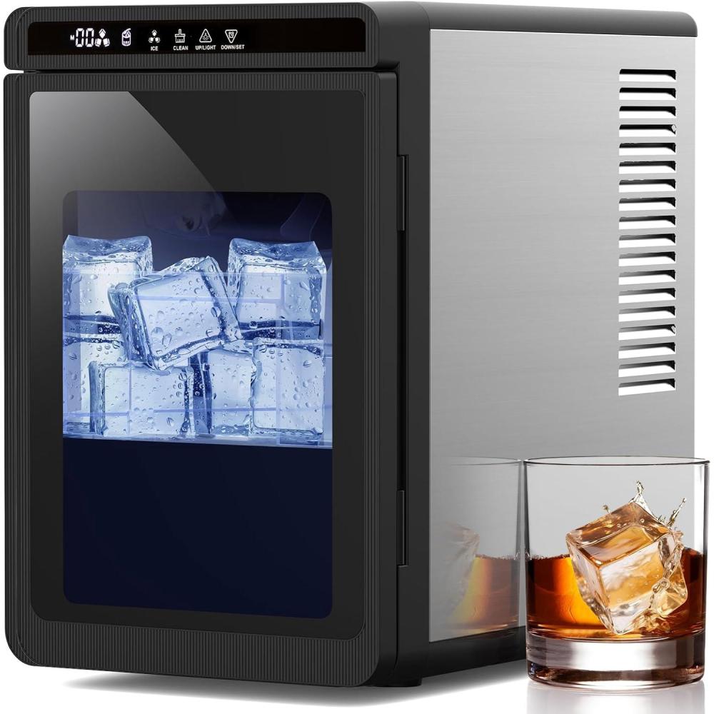 1.6" Large Cube Ice Maker Countertop-Produces 9 Crystal Clear Cubic Ice per Hour,24H Timer,Portable Self-Cleaning Ice Maker for Whiskey,Cocktails,and Iced Beverages,ETL Listed(Black)(Black)