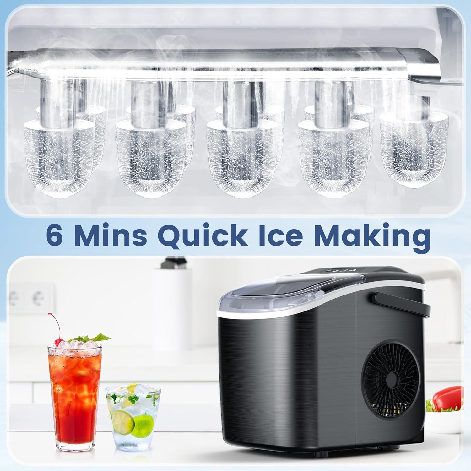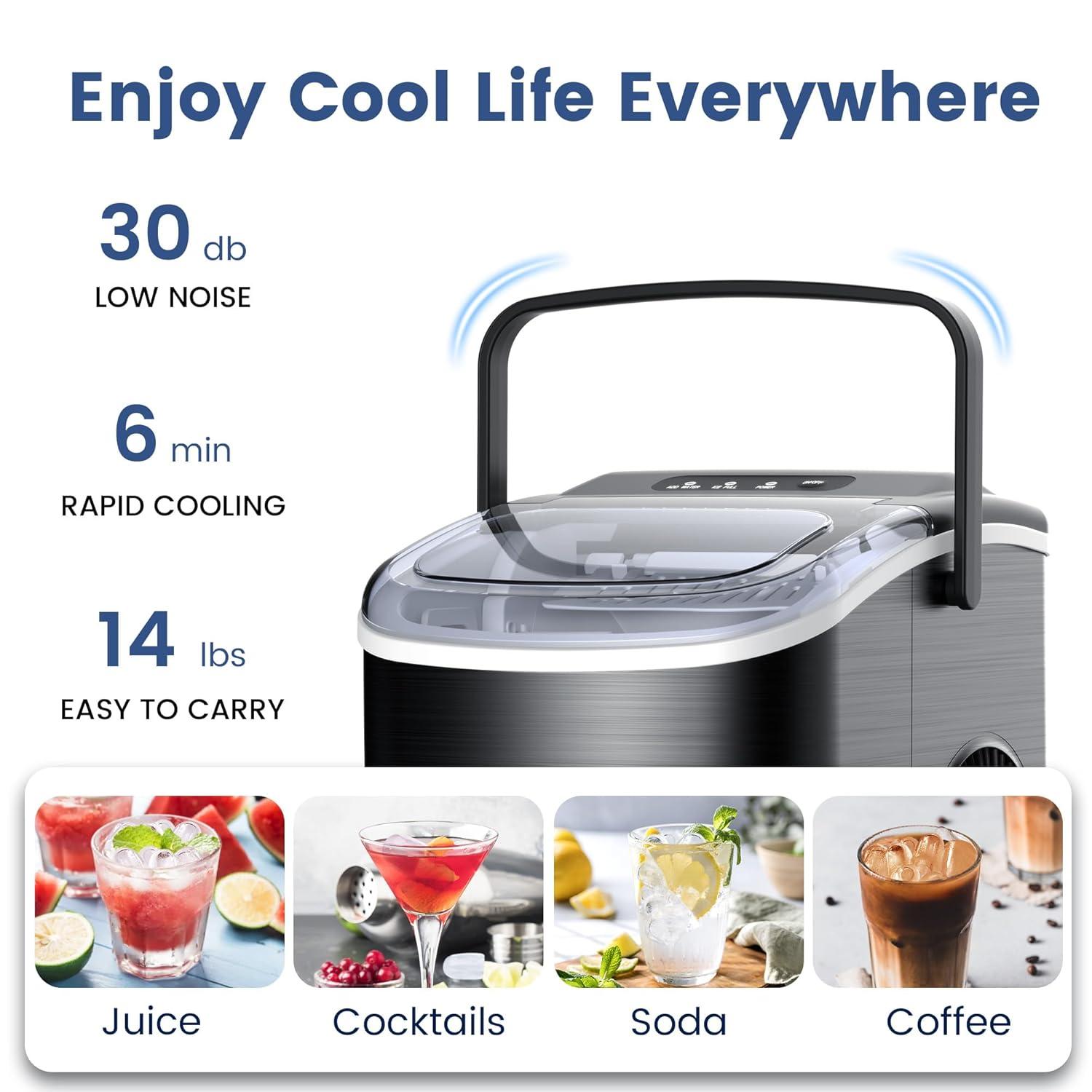 Compact & easy to carry: This ice maker weighs only 14.5 pounds and comes with a sturdy handle so you can carry it anywhere, unlike other models that require you to struggle to move around by hugging them.