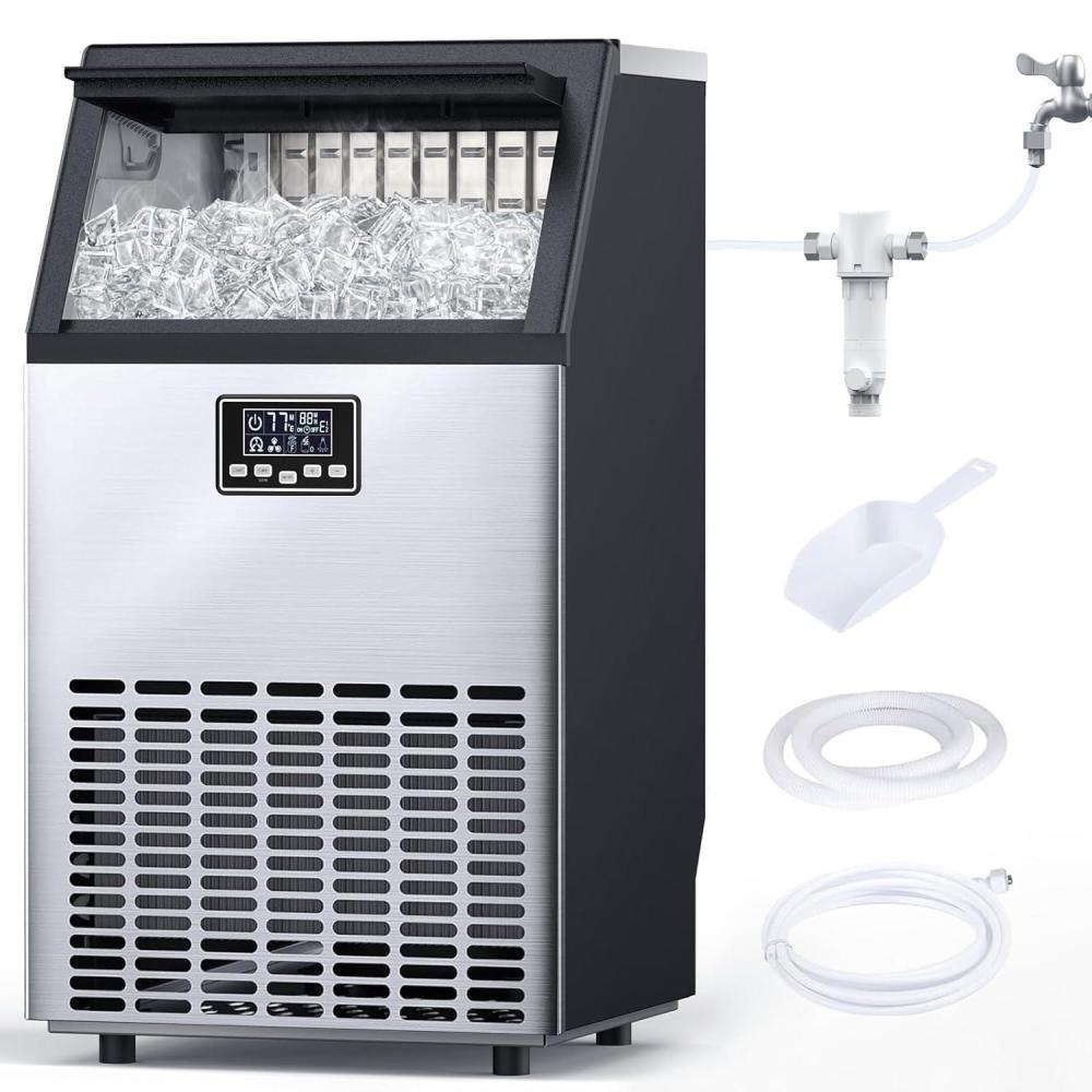 Sturdy and Durable Material: Made of durable stainless steel, the ice maker has a smooth and sanitary surface. the stainless steel surface greatly improves its durability, sturdiness, and service life. The under-counter ice machine maker measures 17.64 x 15.75 x 31.42 inches and can be installed as a free-standing unit