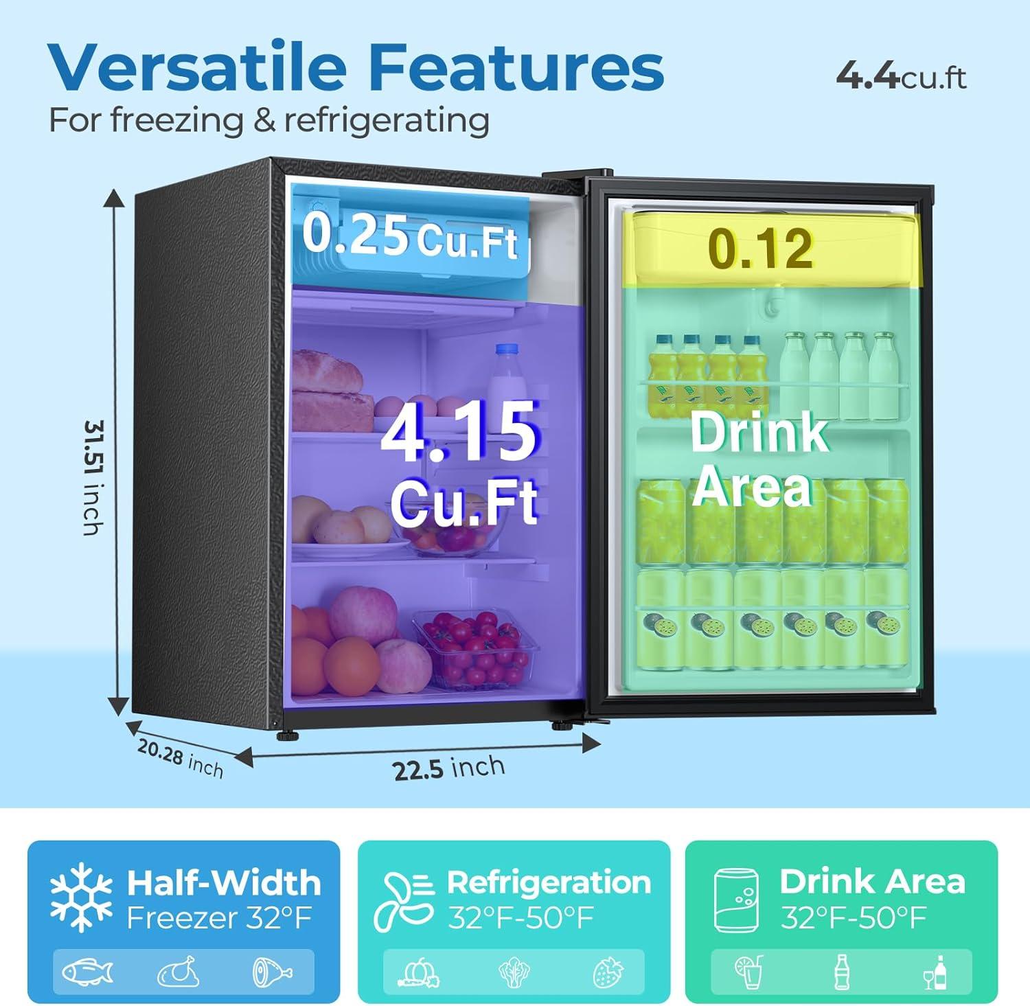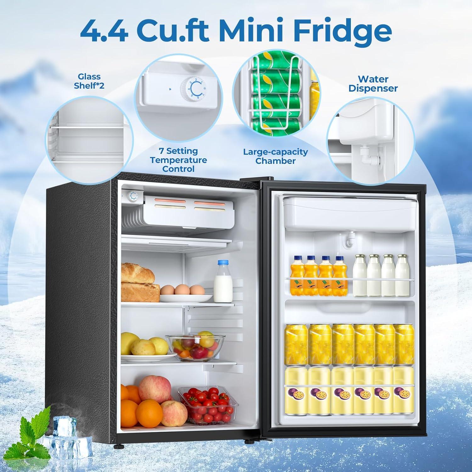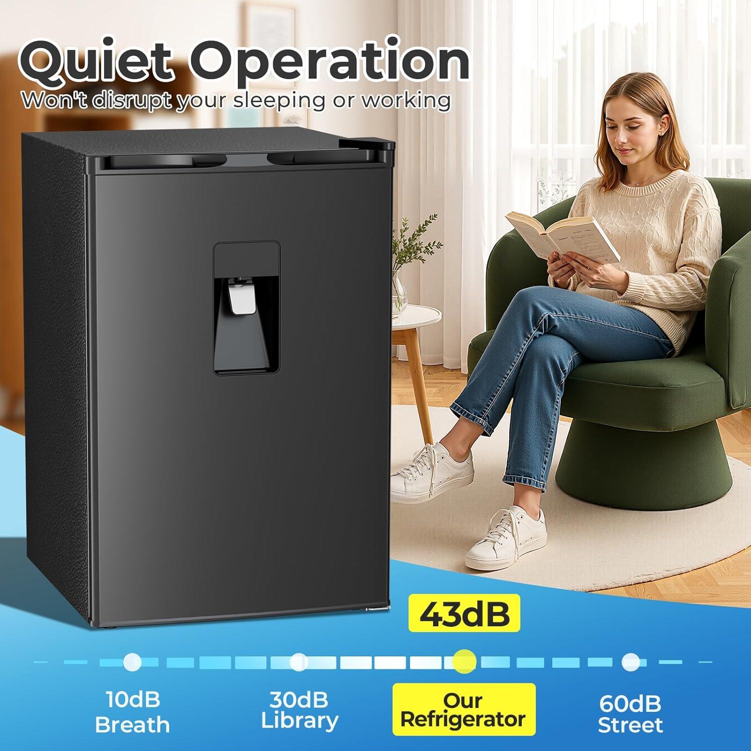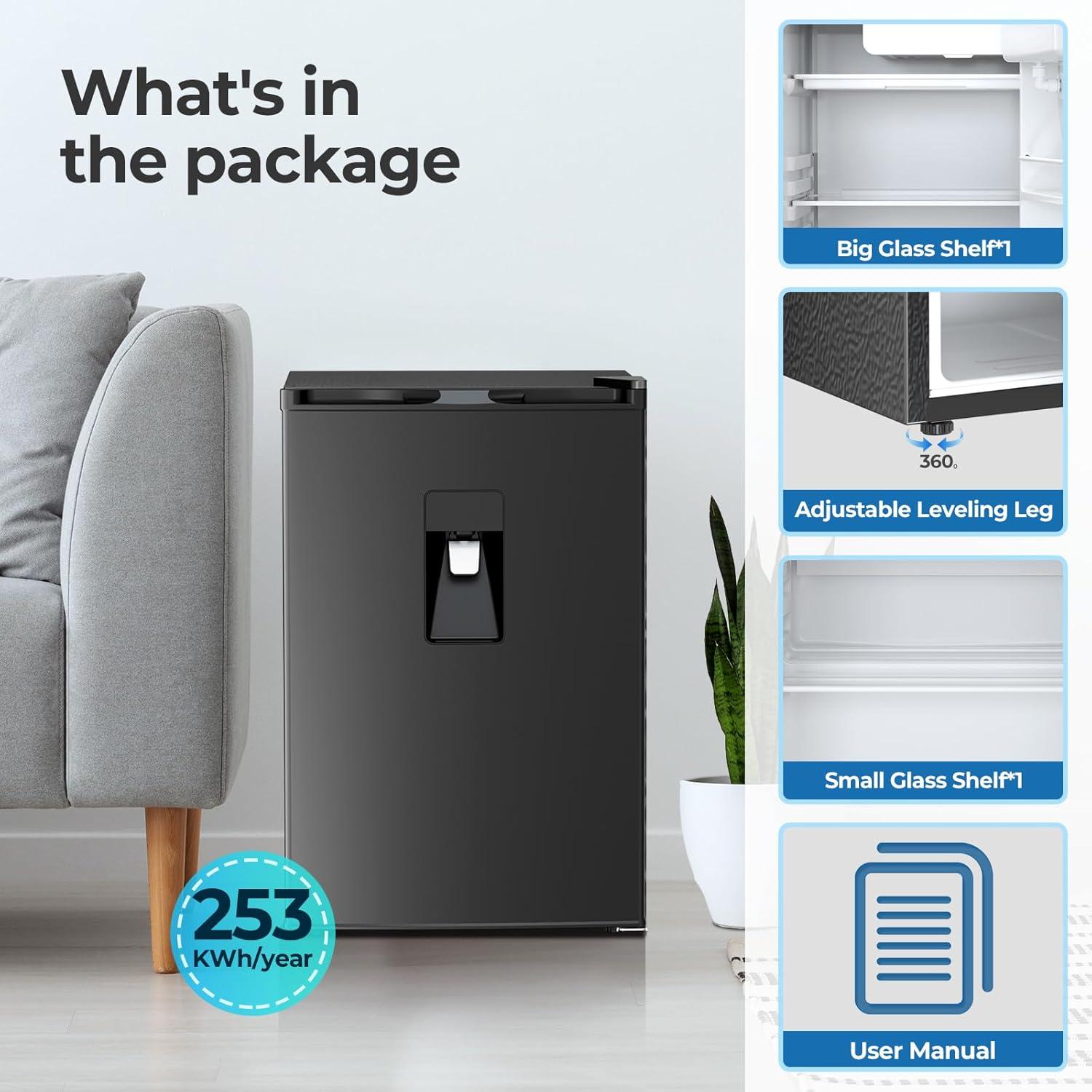 Compact Refrigerator 4.4 cu.ft mini fridge with Water Dispenser, Single Door Refrigerator with Adjustable Temperature Settings, Low noise, for Bedroom, Office, Dorm Black(Black)