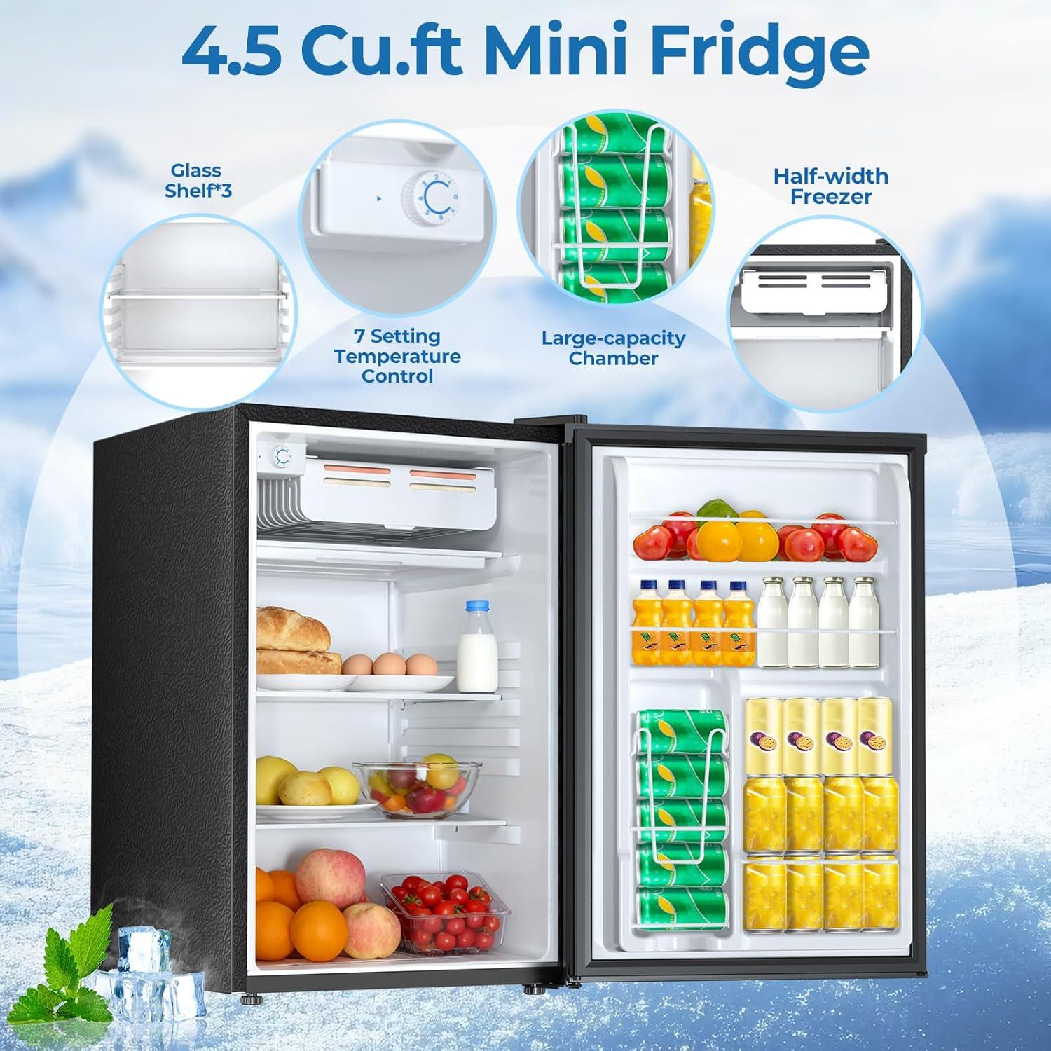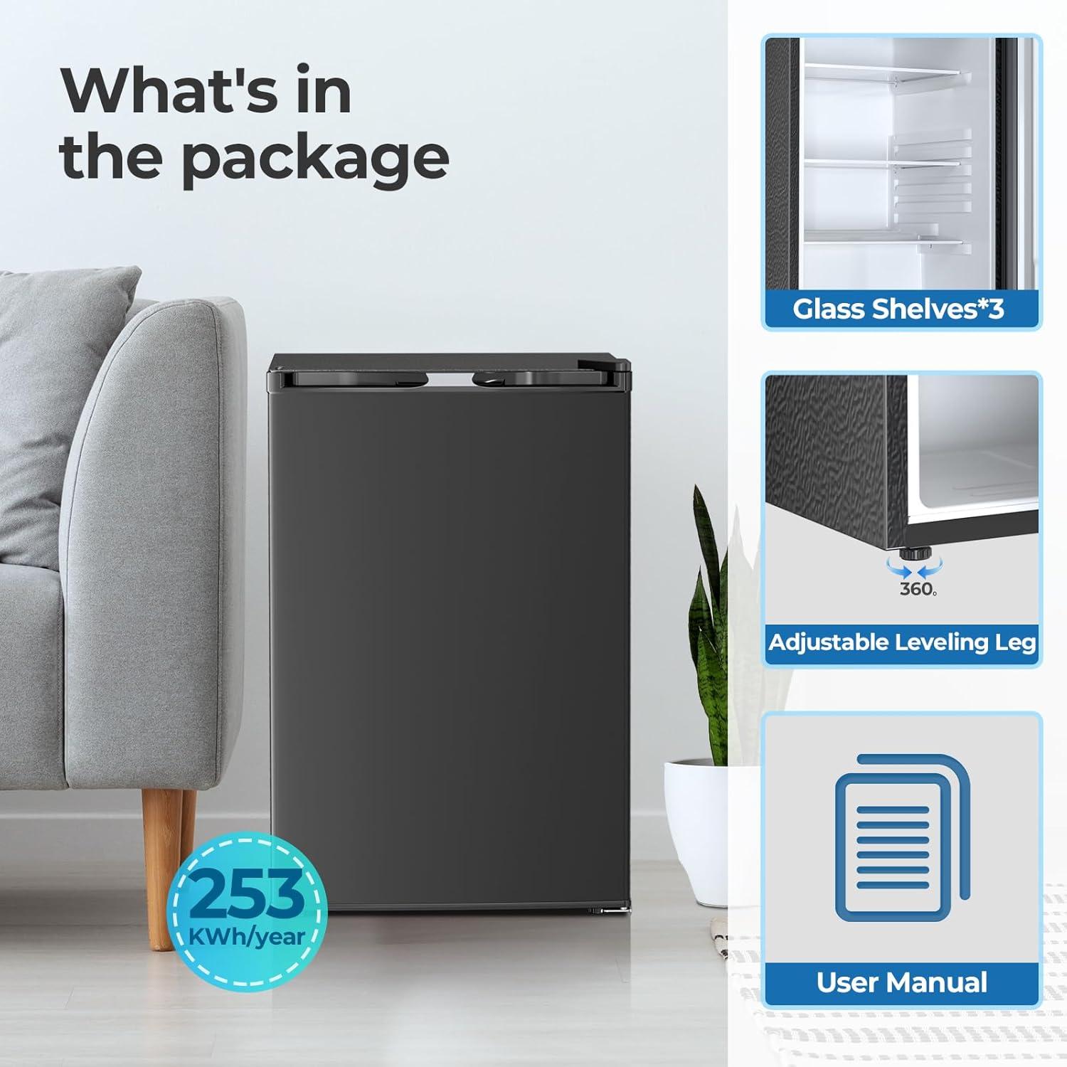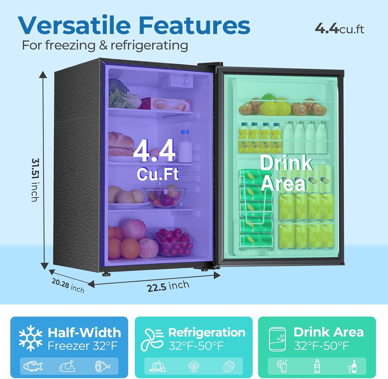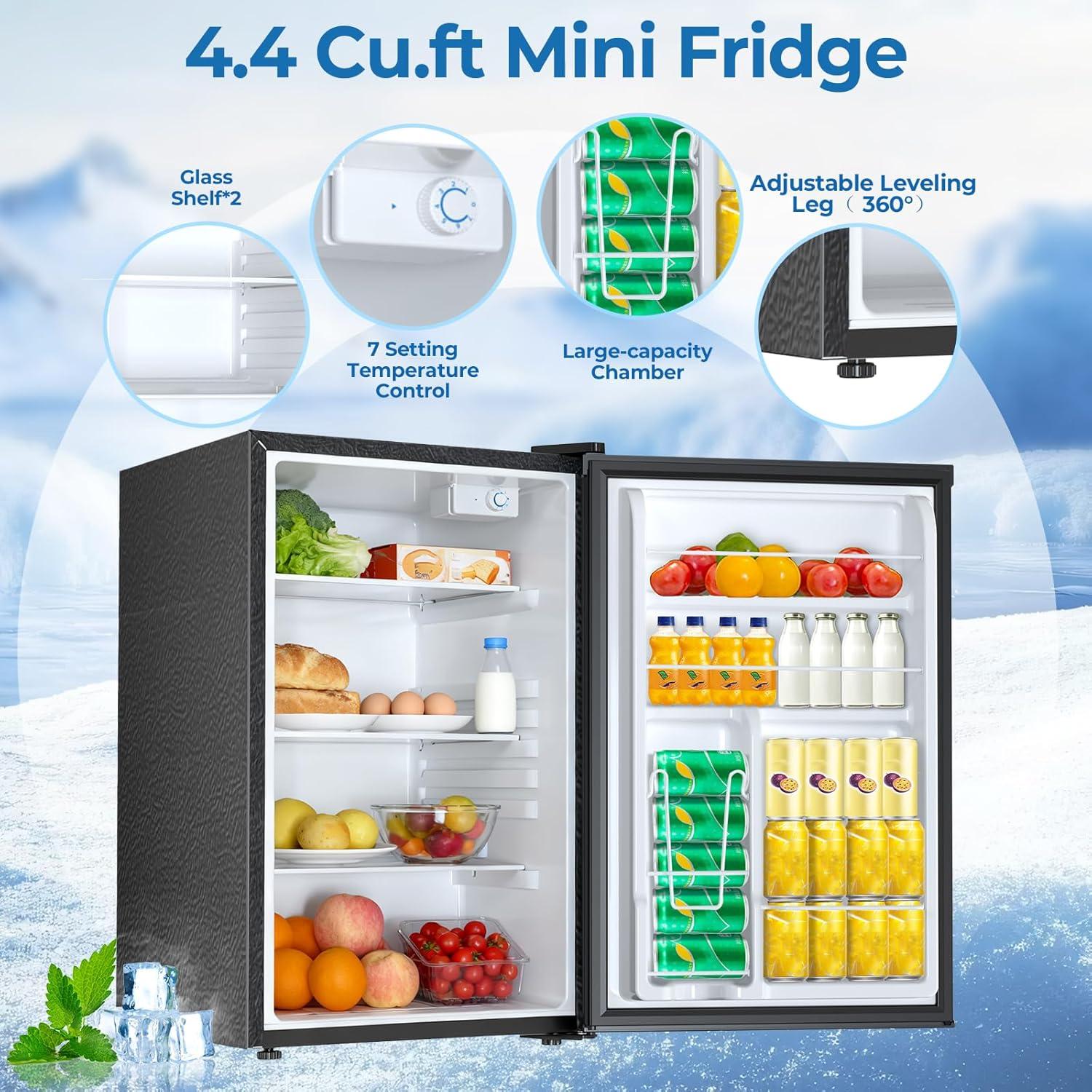Compact Refrigerator 4.4 cu.ft mini fridge with Water Dispenser, Single Door Refrigerator with Adjustable Temperature Settings, Low noise, for Bedroom, Office, Dorm Black(Black)