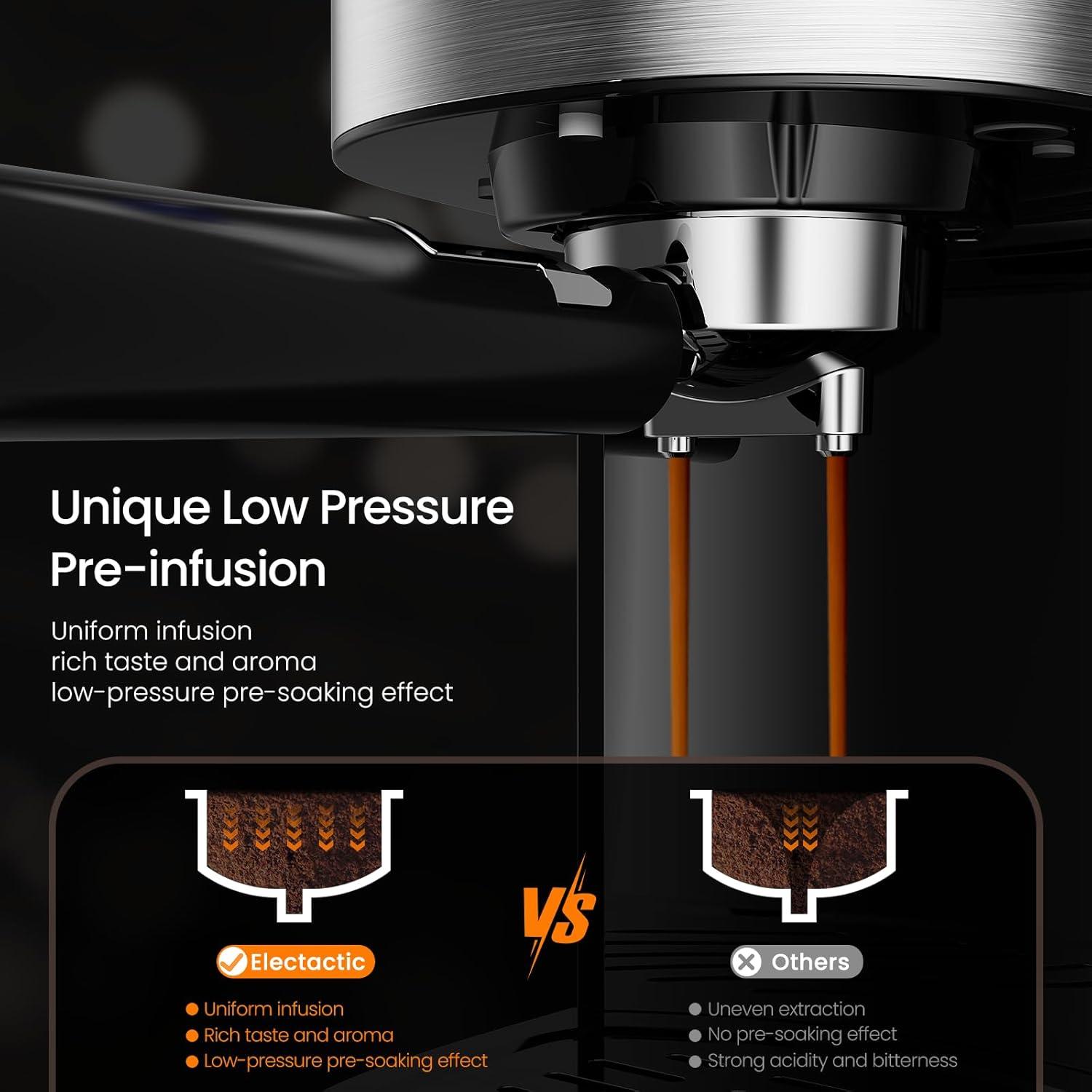 Electactic 20 Bar Semi-Automatic Espresso Machine, Compact Stainless Steel Coffee Maker with LCD Display, Steam Wand, 45oz Removable Water Tank, for Espresso, Cappuccino & Latte at Home or Office