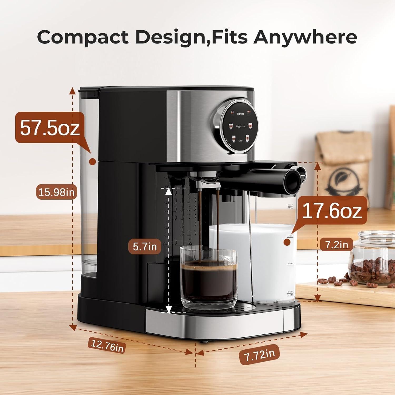 3 in 1 professional espresso maker with dual heating system, automatic milk frother for cappuccino, gift for women or men