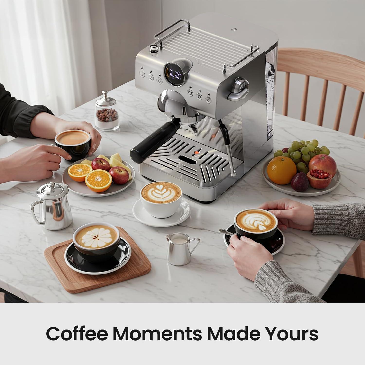 【Professional Milk Frother】With a high-powered steam wand, this cappuccino machine creates silky foam for lattes and cappuccinos, delivering a café-quality experience at home.
