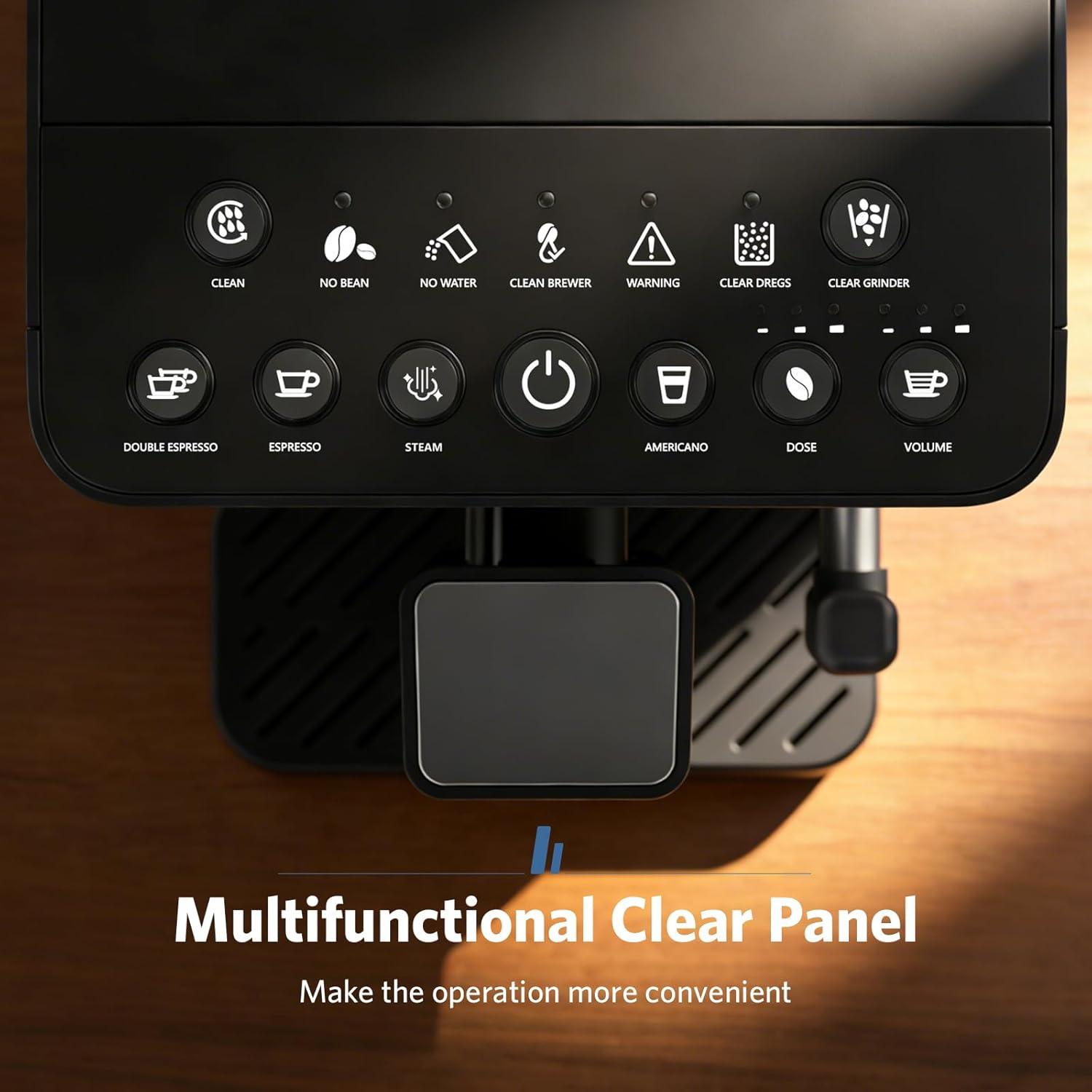 Effortless Operation & Intelligent Alerts: With one-touch buttons for popular drinks (Espresso, Americano, Cappuccino), this coffee maker is incredibly simple. It also smartly reminds you of low beans, low water, full grounds, or when cleaning is due, making your coffee routine worry-free