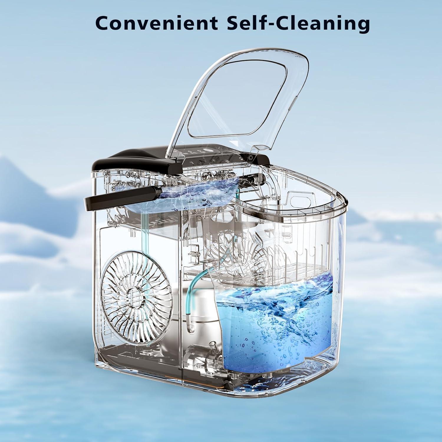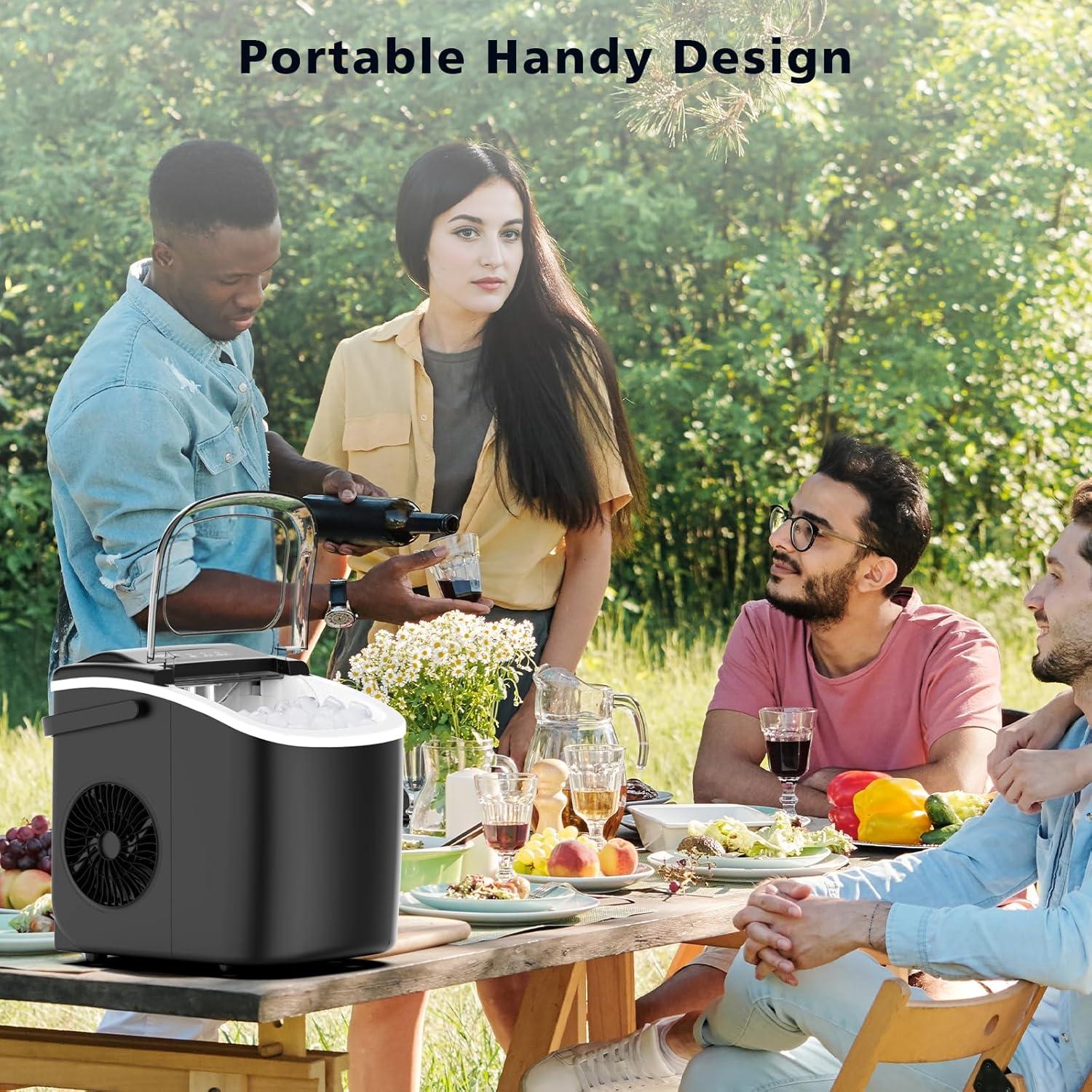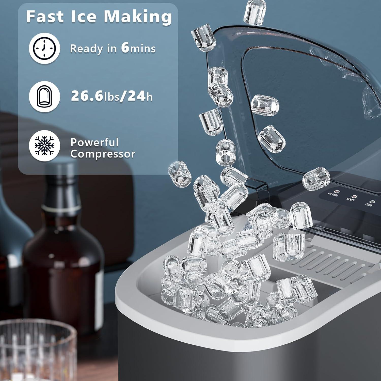 Ice Makers Countertop, Compact Size with Handle 26lbs in 24Hrs, Auto-Cleaning Portable Ice Machine with Basket and Scoop, 9 Ice Cubes Ready in 8 Mins, Ice Maker Quiet Operation for Home, Camping