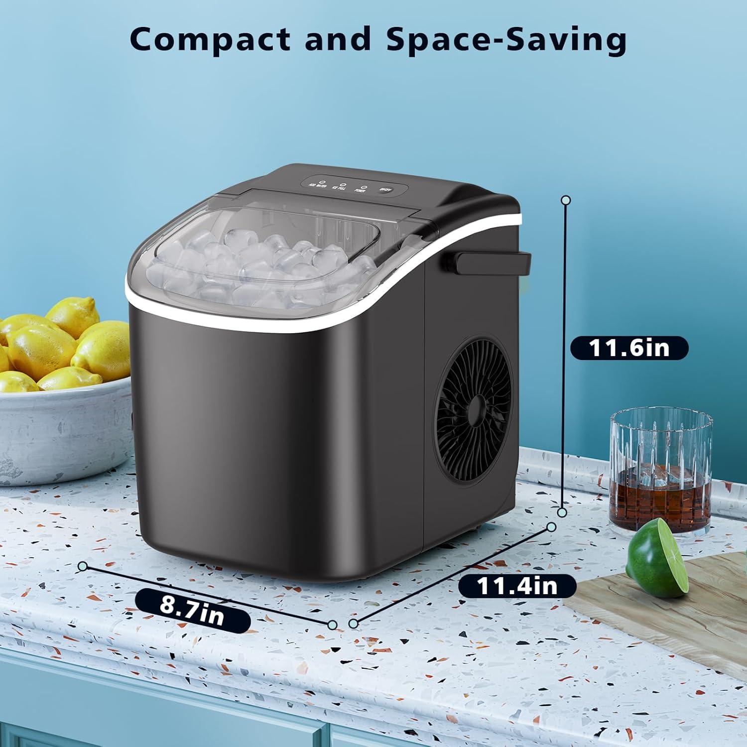 Countertop Ice Maker – 8 Bullet Ice (6 Mins), 26.5lbs/24Hrs – Self-Cleaning, Portable & Adjustable Size with Touch Display
