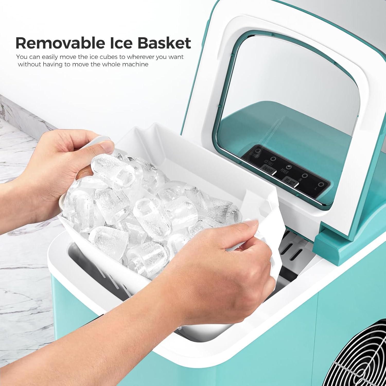 【Portable with a Carry Handle】Take your ice-making power wherever you go. Designed with a convenient carry handle, this portable ice maker is perfect for camping trips, parties, or even just moving it around your kitchen