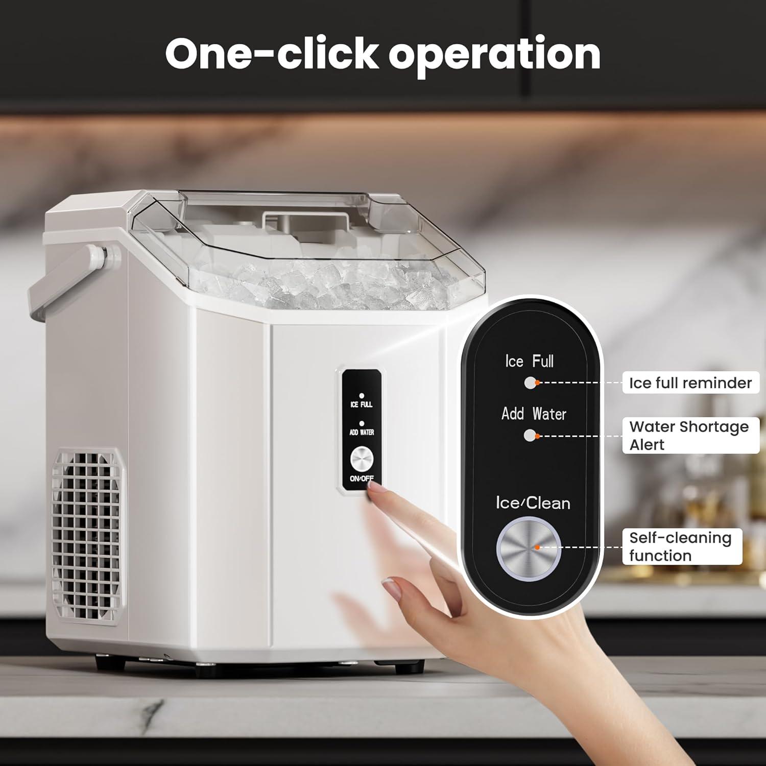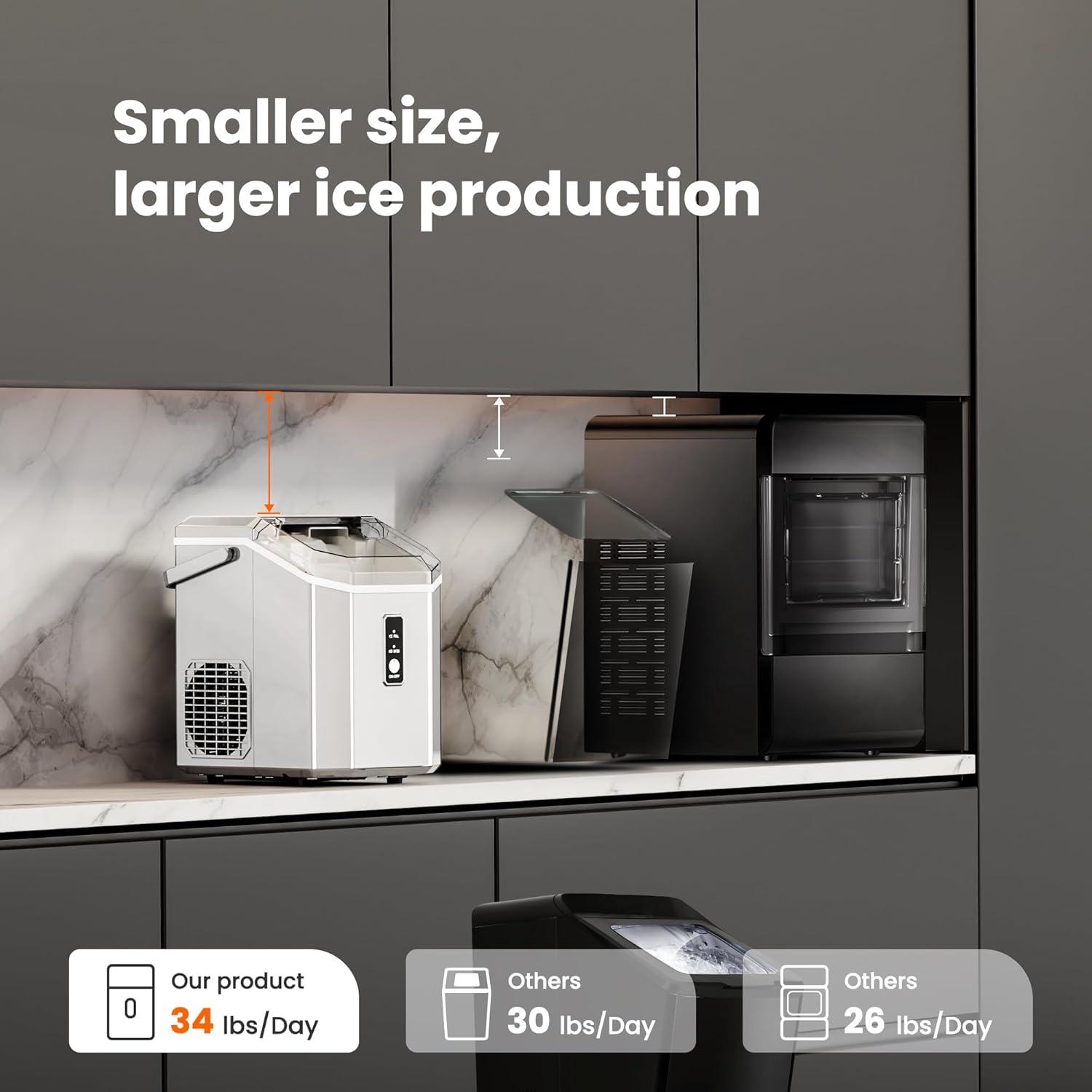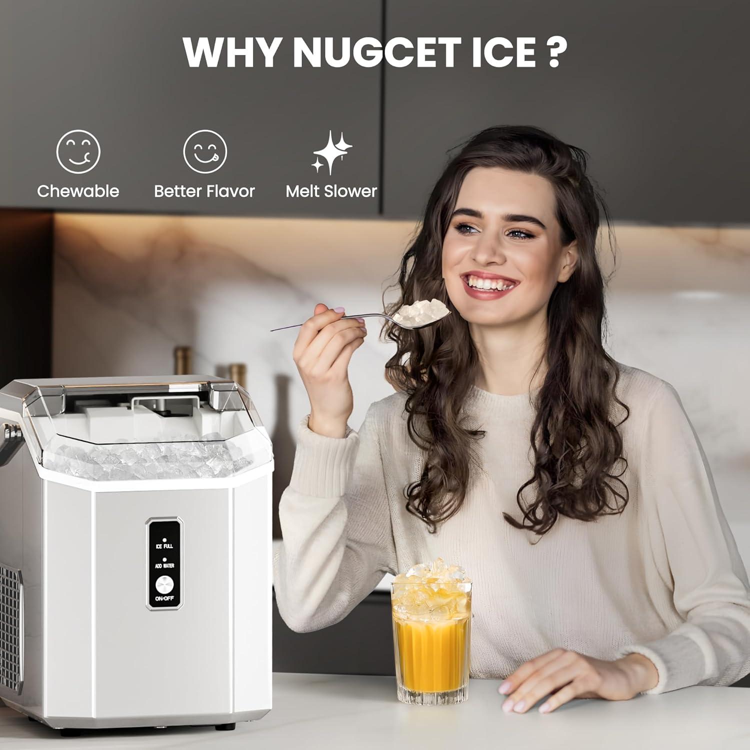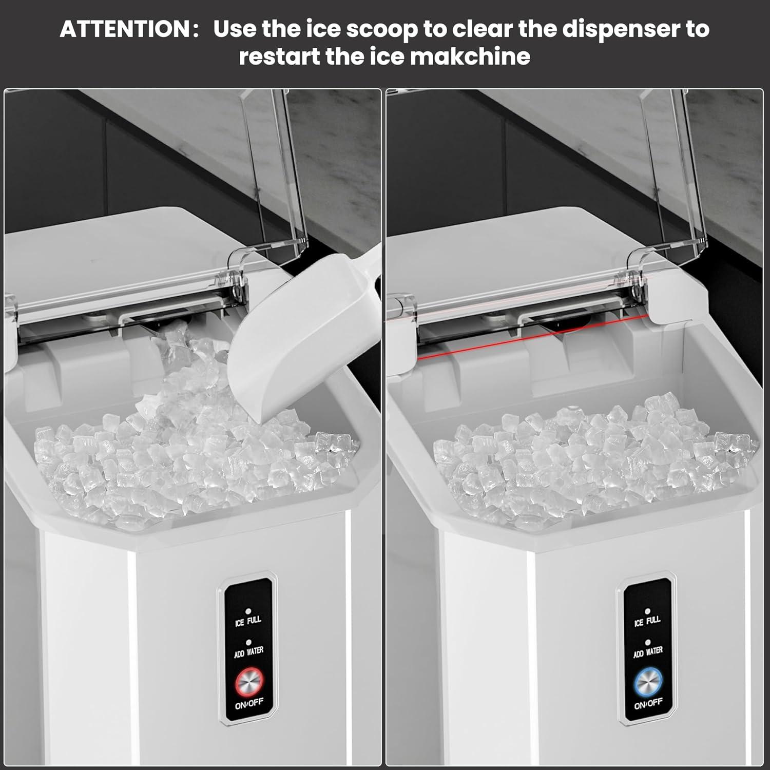 [Ice Making Quickly]Countertop nugget ice maker can quickly produce ice within 7 minutes and can produce at least 35 lbs of ice per day, fully meeting the high demand for ice cubes.