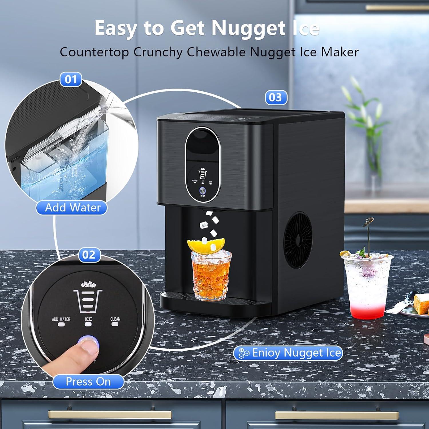 You know that feeling when you pour yourself an ice-cold drink… and realize the fridge ice bin is empty? The party’s in full swing, the grill is hot, your guests are thirsty, yet you’re standing there waiting for water to freeze. Or panicking about where to get ice for drinks….. But not anymore With the {brand name} electric icemaker, you can have an endless supply of ice that will last through hours-long parties at your home. Once you bring home our soft chewable ice machine, you can enjoy soft, fluffy ice pellets—just like your favorite restaurants within minutes. With its fast ice-making technology, this home countertop ice maker delivers up to 44lbs of ice per day, so you’ll always have more than enough. The large-capacity ice bin stores plenty of ice without melting for longer periods. Whether it’s an early morning iced coffee, a midday smoothie, or evening cocktails with friends, there’s always enough ice ready and waiting. With an intuitive one-touch control panel and easy-to-clean parts, this portable ice machine is as convenient as it is efficient. Just add water, press start, and enjoy perfect ice anytime, anywhere.The advanced self-cleaning ice maker feature means no scrubbing or maintenance headaches just push a button and enjoy clean, great-tasting ice every time. From cocktails and smoothies to iced coffee and sparkling water, the chewable nugget ice maker makes every drink taste better, fresher, and more refreshing. Whether you’re prepping for guests, stocking your RV for a road trip, or just indulging in your own nugget ice obsession, this restaurant style ice machine ensures your supply never runs dry. Bring home our Premium-Quality bar drink ice pallet maker and make ice shortages a thing of the past. And Once you have it, you’ll wonder how you ever lived without it.